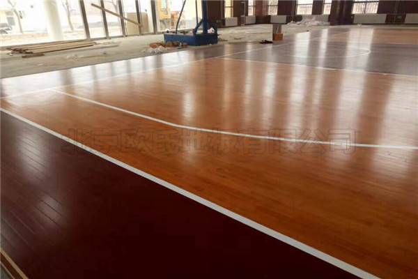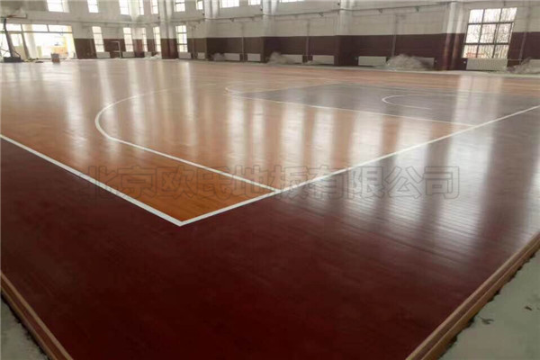 北京歐氏地板有限近期承接山東省臨沂林澗鎮72313部隊籃球館木地板鋪設工程,該項目負責人選擇的是單層龍骨結構楓木材質實木運動地板,鋪設面積548平米,現已鋪設完成結束驗收,該項目運動木地板顏色為定制顏色,采用楓木加色來進行整體鋪裝.