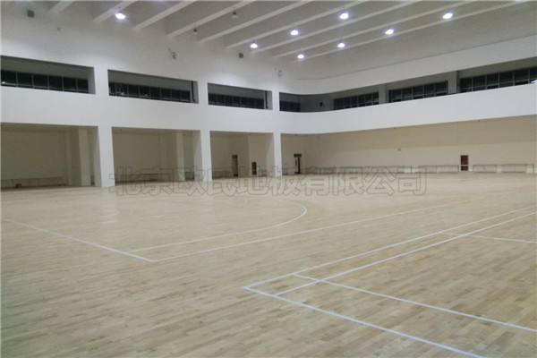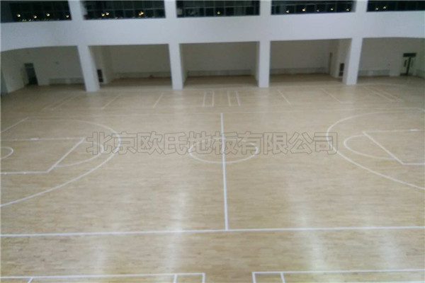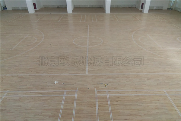 北京歐氏地板有限公司近期承接寧夏石嘴山星海中學運動木地板鋪設工程,該項目負責人選擇的是單層龍骨結構楓木一級下線籃球木地板,鋪設面積1909平米,其中包含1個籃球場地和4個羽毛球場地,現已鋪設完成結束驗收.