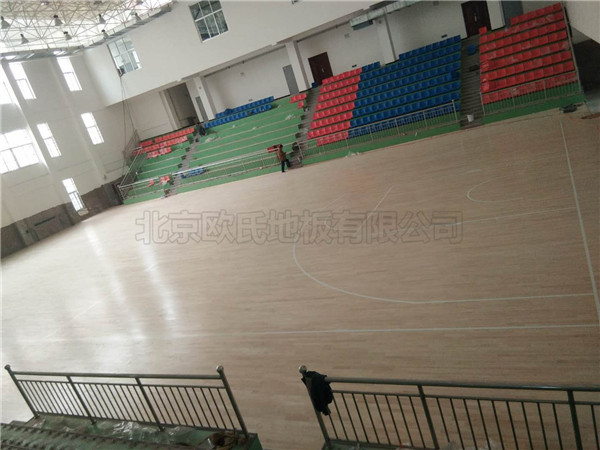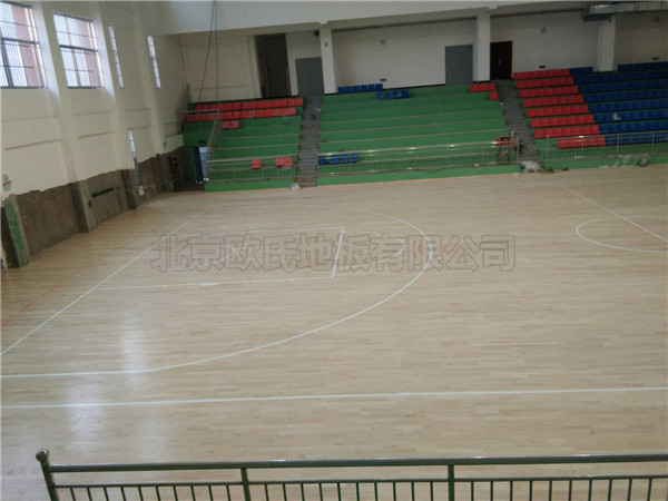北京歐氏地板有限公司承接延安吳起高中籃球木地板鋪設工程,該項目負責人選擇的是主輔龍骨結構,鋪設面積703平米,現已鋪設完成結束驗收.